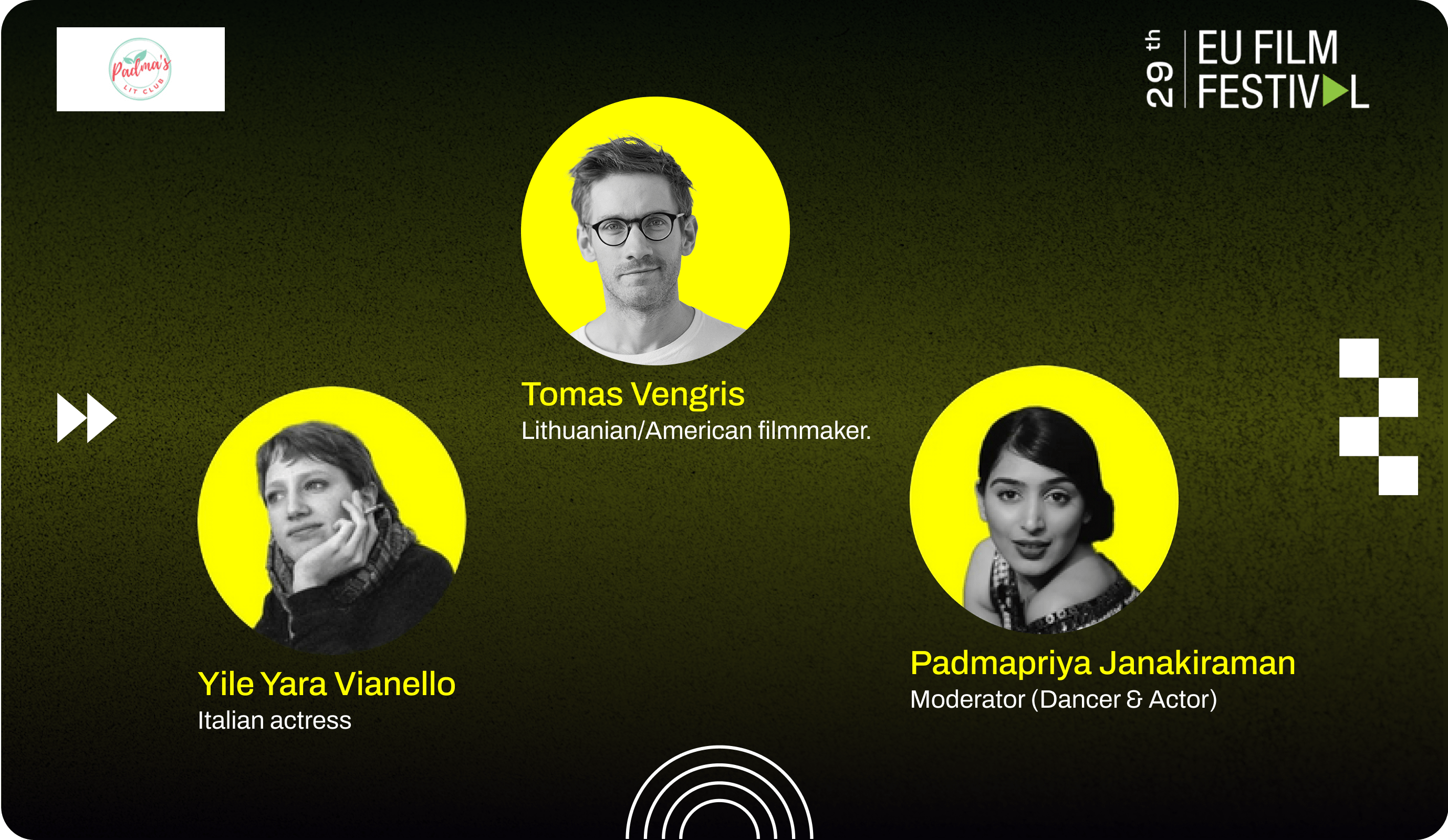 Drawing from the themes in Tomas Vengris’ and Yile Yara Vianello’s films, this panel explores the nuanced ways in which filmmakers develop narratives around relationships, love, and the often complex tension between personal desires and societal expectations. The panel will be moderated by Padmapriya Janakiraman, founder of Padma’s Lit Club, bringing her unique perspective to guide the conversation on how these filmmakers portray intimate, relatable human experiences that resonate with audiences across cultures.